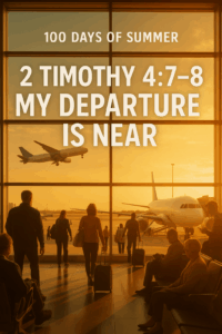 Memorize: 2 Timothy 4:6a-8 the time for my departure is near. I have fought the good fight, I have finished the race, I have kept the faith. Now there is in store for me the crown of righteousness, which the Lord, the righteous Judge, will award to me on that day—and not only to me, but also to all who have longed for his appearing.
