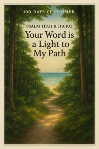 Memorize: Psalm 119:11 I have hidden your word in my heart that I might not sin against you. Psalm 119:105 Your word is a lamp for my feet, a light on my path.