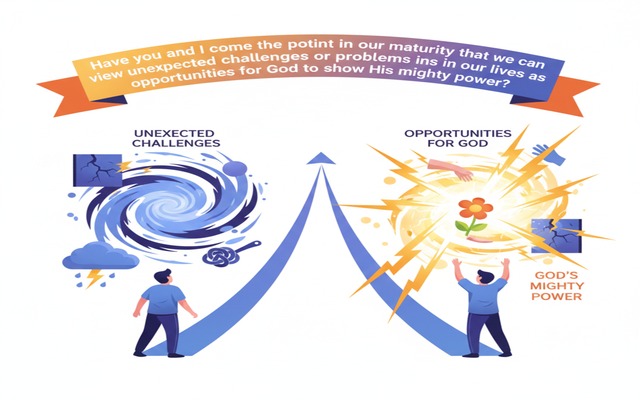 Pause for reflection. Have you and I come to the point in our maturity that we can view unexpected challenges or problems in our lives as opportunities for God to show His mighty power, or are we fairly easily overwhelmed by things we can’t control? Jesus, awakened from His nap, got up and seeing the storm simply spoke TO THE STORM saying: “Be quiet! Be still!” (Mark 4:39)