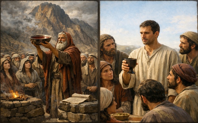 In fact, Matthew records that Jesus said, as He gave them the cup that upper room evening: “Drink from it all of you. This is My blood of the covenant, which is poured out for many, for the forgiveness of sins.” (Matt. 26:27) Oh, they understood, for Moses has sprinkled the lamb’s blood on the people as they first entered into Covenant with God at Mount Sinai! (Exodus 24:7,8) Now Jesus was declaring it was HIS shed blood, not a lamb’s, which would be accepted by God the Father as payment for sin and establishment of a new covenant between God and each repentant person!