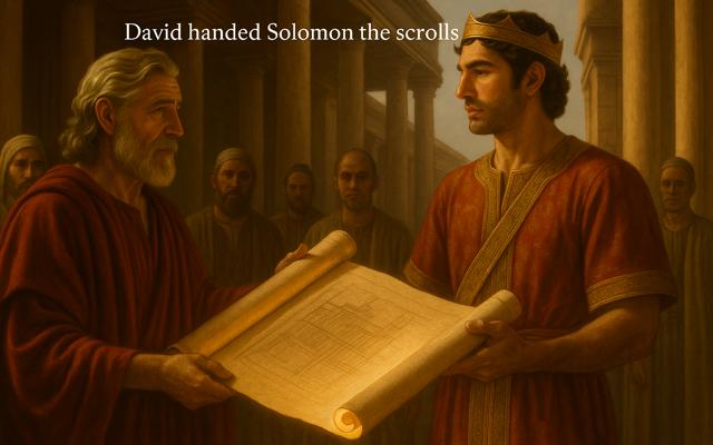 Yesterday I left you in the Jerusalem palace throne room as King David was transitioning the Kingship of Israel to his son Solomon as recorded in 1 Chronicles 28. While assuming the role of king was monumental, David was also challenging Solomon to assume responsibility for this, the greatest project ever attempted in Israel’s history. David handed Solomon the scrolls which contained the specific dimensions of the Temple and all the details regarding the building materials, especially the gold, silver and precious jewels! David warned Solomon to be very careful in this project since every detail in the specifications had been given to David from Almighty God Himself! (1 Chronicles 28:11-21) Can you imagine the heavy weight of expectations Solomon must have felt at that moment?