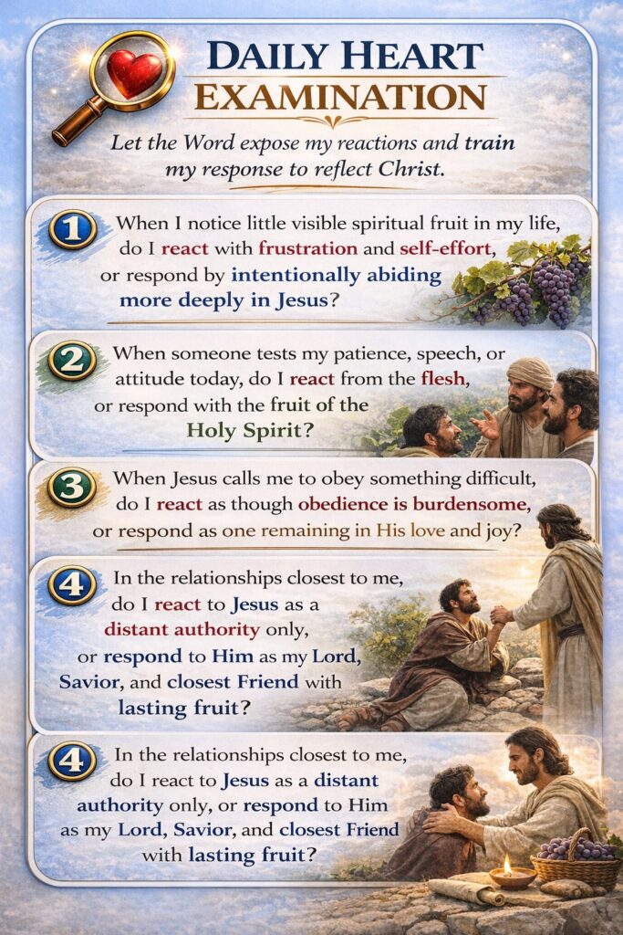 - 1️⃣ Trying to produce spiritual fruit apart from abiding union with Christ leads to barrenness, weakness, and self-powered failure. John 15:4-5; Romans 7:18; Philippians 2:13
