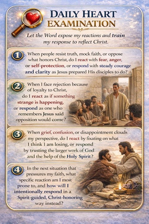 - 5️⃣ Grief, fear, and confusion can dominate disciples when they focus more on loss and danger than on Christ’s larger purpose. (John 16:5-6; Luke 24:17-21; Matthew 16:22-23)