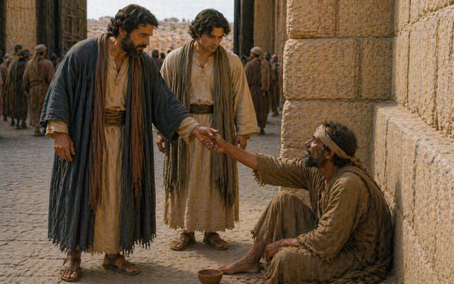 Acts 3 describes a remarkable moment in history. As the apostles Peter and John are approaching the gate Beautiful of the Temple, they see a crippled man being carried to his normal begging place near the gate. The beggar extends his hand asking for compassion as Peter and John walk by.
