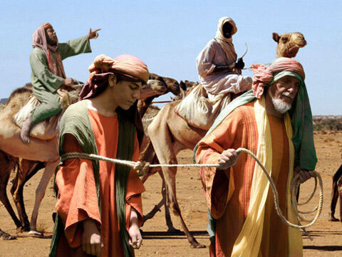 But as they sat having lunch under a tree the brothers saw a caravan of traders approaching and instead sold their brother Joseph to the traders who were heading to Egypt. There young Joseph would be resold on the slave market, a common practice in those days. The traders are identified as “Ishmaelites” which means they were descendants of Ishmael, brother of Isaac whom Abraham had sent away with his Egyptian mother Hagar, remember? (Gen. 21:8-21) Ishmael would have been uncle to Jacob, thus distant relatives to Jacob’s sons who were selling their brother Joseph.