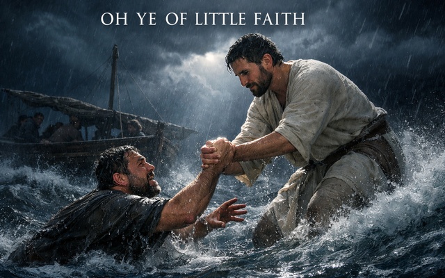 How many steps did Peter take, when did he finally take his eyes off Jesus and look around at what he was doing, we don’t know. But what the record tells us is that when he did, he sank like a rock in the water! As he did, Peter cried out “Lord, save me!” (Matt. 14:30) I presume it was when Peter came up for his first breath that Jesus grabbed his hand and pulled him back up toward the boat. And Jesus asked Peter a question that would resound in Peter’s heart and mind many times: “You of little faith! Why did you doubt?”