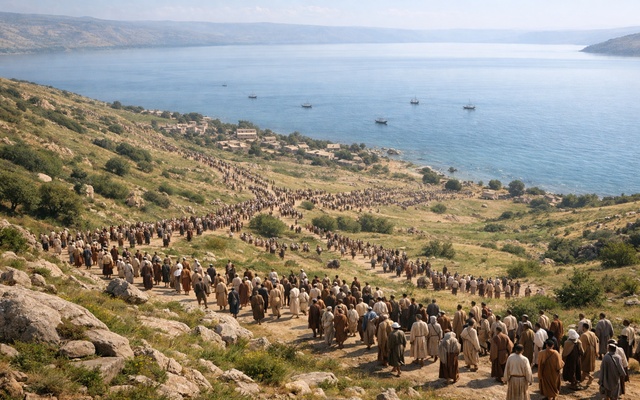 So how many do you estimate Jesus watched flow off that hillside back to their homes in Capernaum, Tiberias, Bethsaida and other towns around the Sea of Galilee that day?