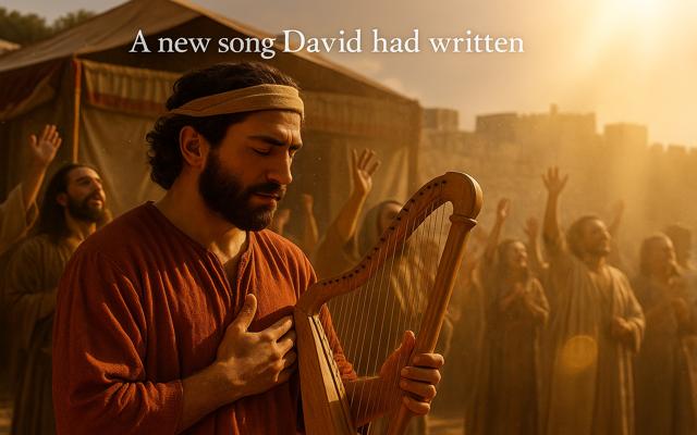 And so, with those two major adjustments accomplished, David led a second, massive, well organized, God honoring parade to bring the sacred Ark of God’s Covenant from Obed-Edom’s house to David’s special tent in Jerusalem. That parade is described for us both in 2 Samuel 6:13-17 & 1 Chronicles 15:14-29. As the Ark was brought into its new special tent home in Jerusalem a great worship service took place including a new song David had written which was sung for the first time and we find it recorded both in 1 Chronicles 16:8-36 and Psalms 105 & 96!!