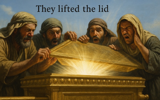 In desperation the people sent the Ark to a nearby town Kiriath Jearim, and a courageous man named Abinadab agreed to take it into his house for safekeeping. He assigned his son Eleazar the responsibility to ‘guard the Ark’ and it remained there for 20 years! (1 Samuel 6:21-7:2) We know Beth Shemesh was one of the key cities where Levites lived, as assigned by Joshua, (Joshua 21:16) and therefore I presume Abinidab was head of a Levite family thus selected by the people to be entrusted with the Ark, until a better plan could be made. Can you even imagine what it would be like to have the golden, sacred Ark of the Covenant of the God of Israel in your spare bedroom, for 20 years? Is there anything you’d take out of your house or stop doing in your house if God’s Ark of the Covenant was in your home? If so, what does that mean?
